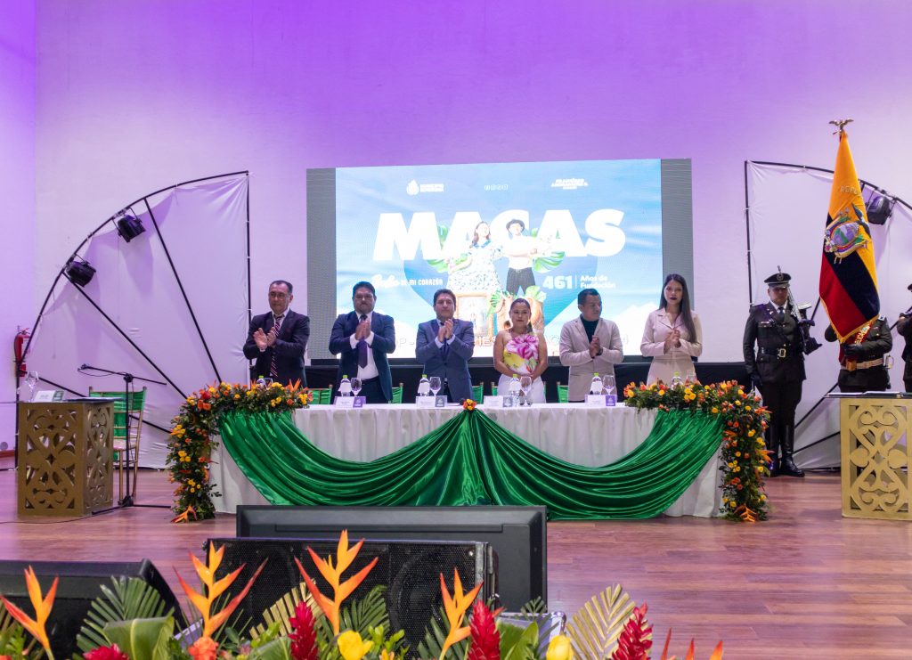 Macas celebra 461 años de fundación con desarrollo y progreso. En la Sesión Solemne de conmemoración, realizada en el Teatro Municipal Washington Ricaurte, el Municipio de Morona, liderado por el alcalde Francisco Andramuño y junto al accionar de los concejales, presentó obras importantes que se encuentran en desarrollo y están planificadas para transformar la vida de todas las familias de la Esmeralda Oriental. Más de 20 millones de dólares en inversión destinadas al progreso y modernidad de la ciudad.
